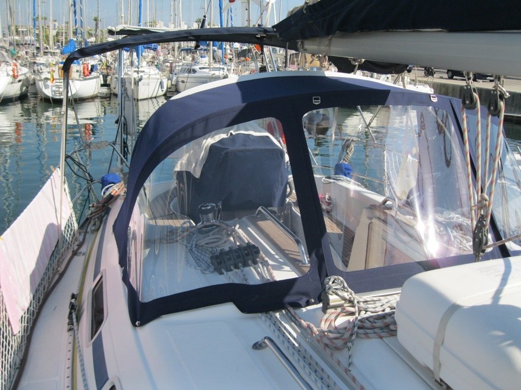 Sprayhood and frame kit designed for the Bavaria Cruiser 32, model year 2002 onward. Built with robust, marine-grade materials for long-lasting protection, including Sunbrella Plus fabric with enhanced water resistance and rustproof YKK zippers. All instructions for DIY installation are provided with the kit.