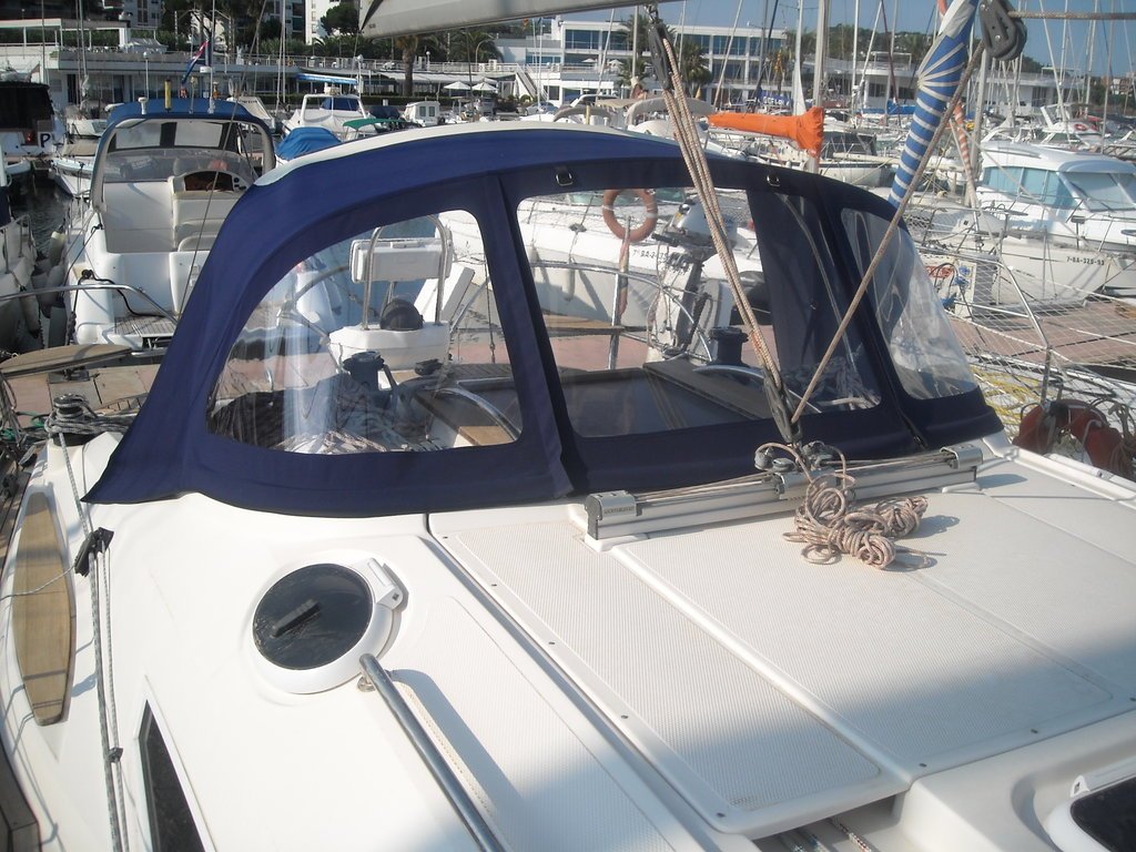 Sprayhood and frame kit designed for the Elan 384 Impression, model year 2006 onwards. Built with robust, marine-grade materials for long-lasting protection, including Sunbrella Plus fabric with enhanced water resistance and rustproof YKK zippers. All instructions for DIY installation are provided with the kit.