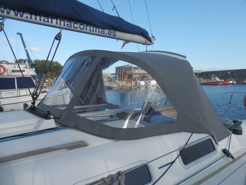 Sprayhood and frame kit designed for the Dufour 365 Grand Large, model year 2005 onwards. Built with robust, marine-grade materials for long-lasting protection, including Sunbrella Plus fabric with enhanced water resistance and rustproof YKK zippers. All instructions for DIY installation are provided with the kit.