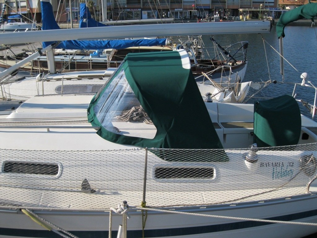 Sprayhood and frame kit designed for the Bavaria 32 Holiday, model year 1997 onward. Built with robust, marine-grade materials for long-lasting protection, including Sunbrella Plus fabric with enhanced water resistance and rustproof YKK zippers. All instructions for DIY installation are provided with the kit.