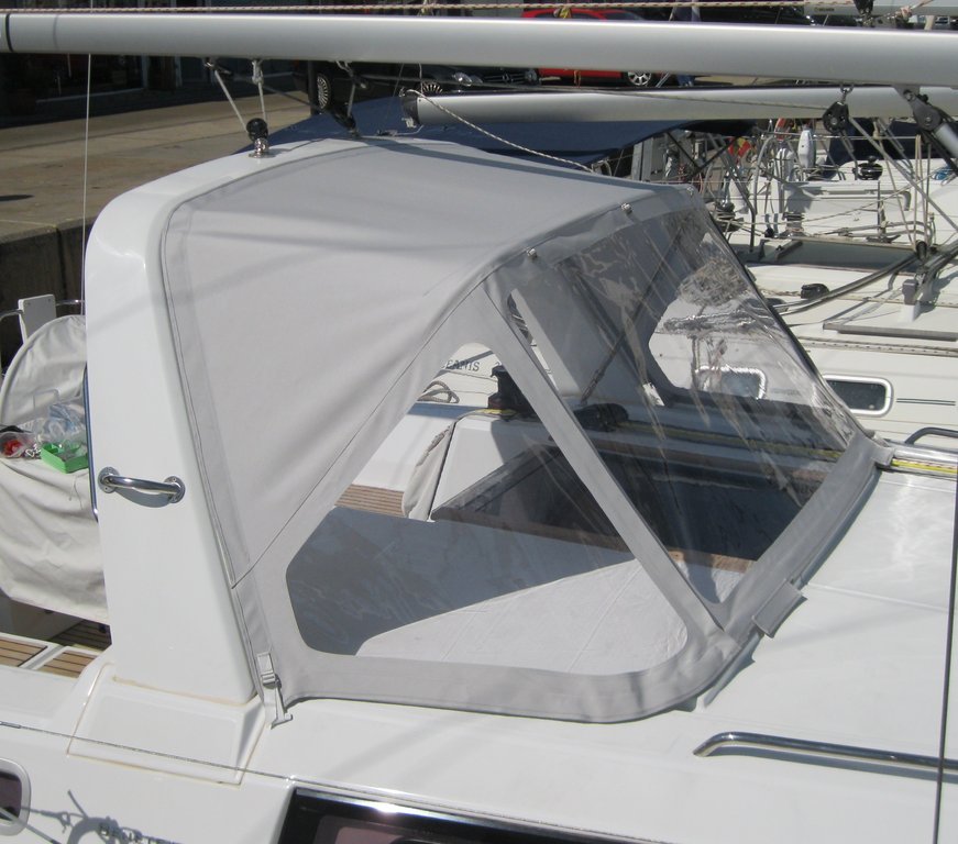 Sprayhood and frame kit designed for the Beneteau Oceanis 35, model year 2015 onward. Built with robust, marine-grade materials for long-lasting protection, including Sunbrella Plus fabric with enhanced water resistance and rustproof YKK zippers. All instructions for DIY installation are provided with the kit.