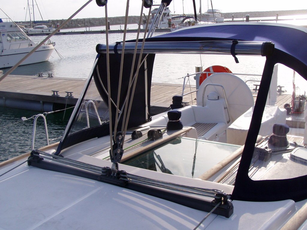 Sprayhood and frame kit designed for the Beneteau Oceanis 40, model year 2007 onward. Built with robust, marine-grade materials for long-lasting protection, including Sunbrella Plus fabric with enhanced water resistance and rustproof YKK zippers. All instructions for DIY installation are provided with the kit.