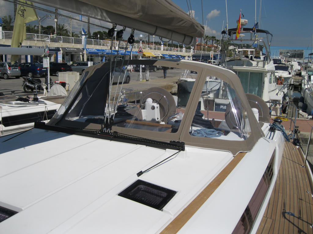 Sprayhood and frame kit designed for the Jeanneau Sun Odyssey 509, model year 2012 onwards. Built with robust, marine-grade materials for long-lasting protection, including Sunbrella Plus fabric with enhanced water resistance and rustproof YKK zippers. All instructions for DIY installation are provided with the kit.