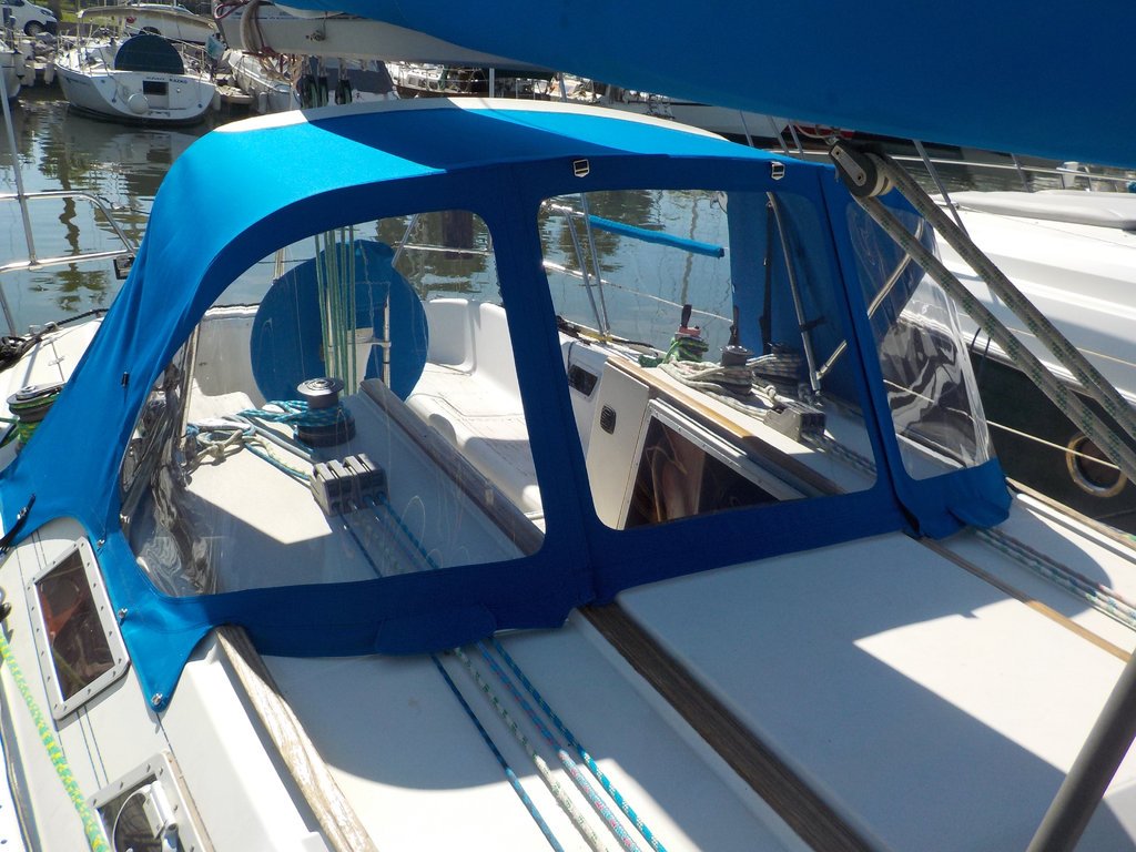 Sprayhood and frame kit designed for the Jeanneau Sun Shine 36, model year 1984 onwards. Built with robust, marine-grade materials for long-lasting protection, including Sunbrella Plus fabric with enhanced water resistance and rustproof YKK zippers. All instructions for DIY installation are provided with the kit.