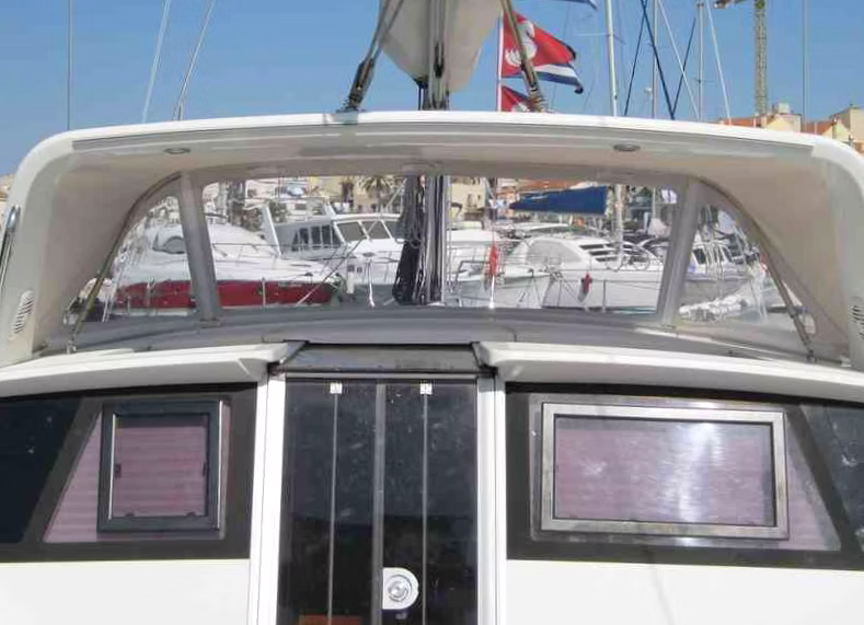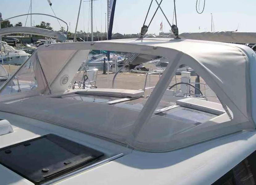 Sprayhood and frame kit designed for the Beneteau Sense 43, model year 2011 onward. Built with robust, marine-grade materials for long-lasting protection, including Sunbrella Plus fabric with enhanced water resistance and rustproof YKK zippers. All instructions for DIY installation are provided with the kit.